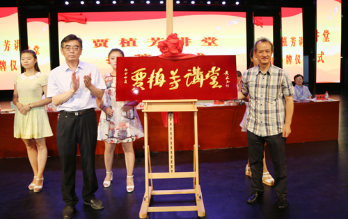 党委书记黎志强和《人民日报》高级记者李辉先生为贾植芳讲堂揭牌