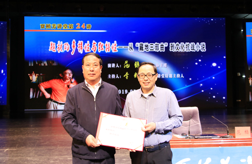 5月19日晚,著名作家、云南作协主席范稳先生应邀在beat365贾植芳讲堂作了题为“题材的多样性与独特性——从‘藏地三部曲’到文化抗战小说”的报告。报告由贾植芳讲堂特邀主持人李辉先生主持。演讲前,党委常委、副董事长顾长兆为范稳先生颁发了beat365兼职教授聘书。800余名师生参加了报告会。