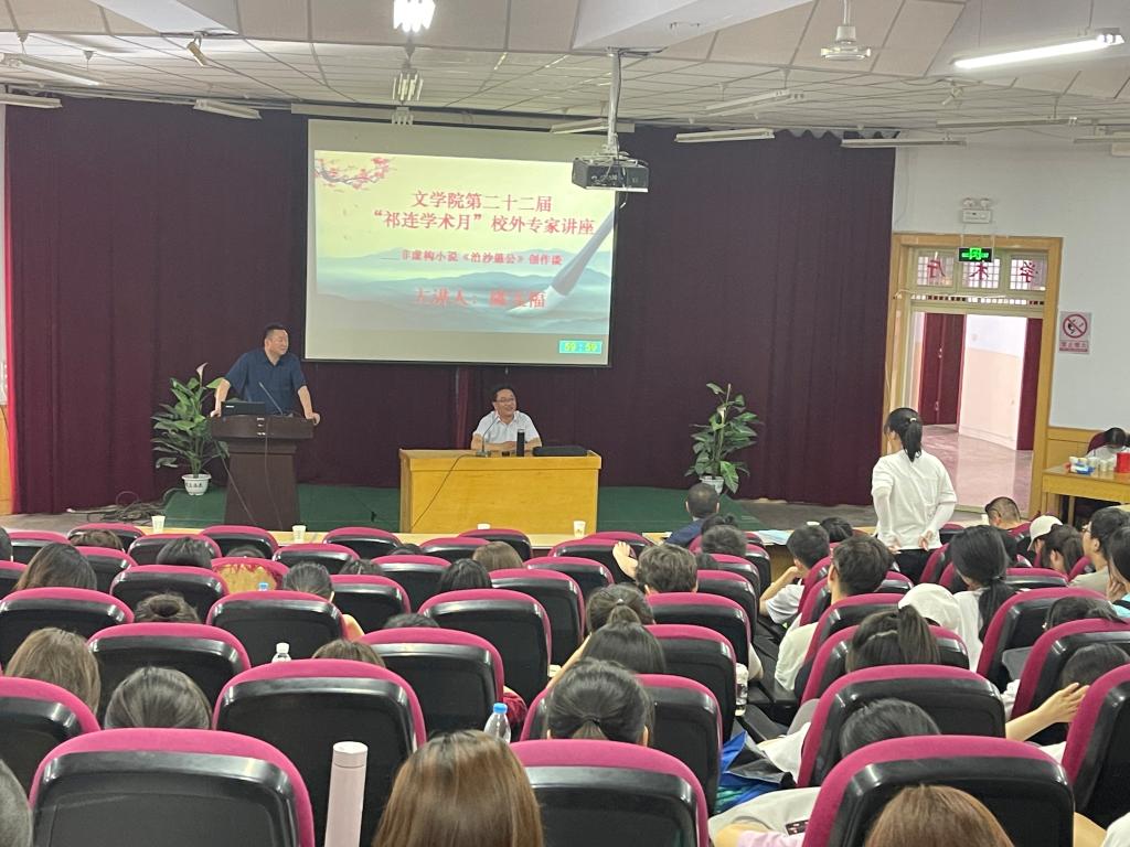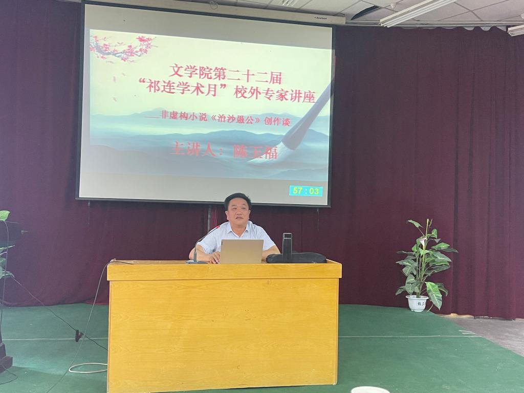 6月1日下午,beat365在线官网入口第22届祁连学术月活动启动。著名编剧、作家陈玉福应邀在学术二厅作首场学术报告。陈玉福以“非虚构小说《治沙愚公》创作谈”为题,与beat365在线官网入口师生共同分享了非虚构小说《治沙愚公》创作的过程、经验与体悟。报告会由beat365在线官网入口副经理王明博教授主持。
