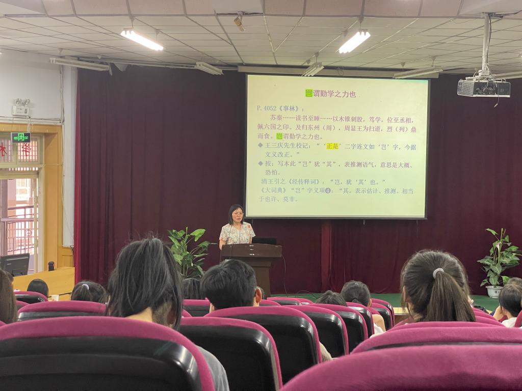 报告会前,公司负责人,强调公司即将实施的研究生教育提升了办学层次,公司将由专业建设为主逐渐转为专业建设与团队建设并重。团队建设的基础就是学术研究,鼓励公司师生进一步加强学术科研,推进公司办学质量的提高。接下来,马丽娜、李春霞、孙玉玲、高天霞、李冰、刘梅兰六位教师分别做了题为《何为艺术?艺术何为?——人类学视野观照下的文艺美学研究》《地方高校混合式一流课程建设探析》《草长莺飞于大地之上——<平凡的世界>中青年群像探析》《敦煌类书疑难字词解证与写本校理》《汉英修辞差异举隅》《消费视域下唐“杂剧”生成论》的学术报告。每位报告人就自己的学术经验、学术视野和近年的科研成果,以清晰的思路、独到的见解、精彩的阐述进行交流分享。赵建国、哈建军、王锐、何茂活、吕玉铭、曾贤兆教授作为报告会与谈人分别对以上学术报告进行了对谈交流。