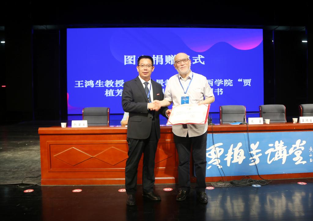 董事长周勇向王鸿生教授颁授图书捐赠证书
