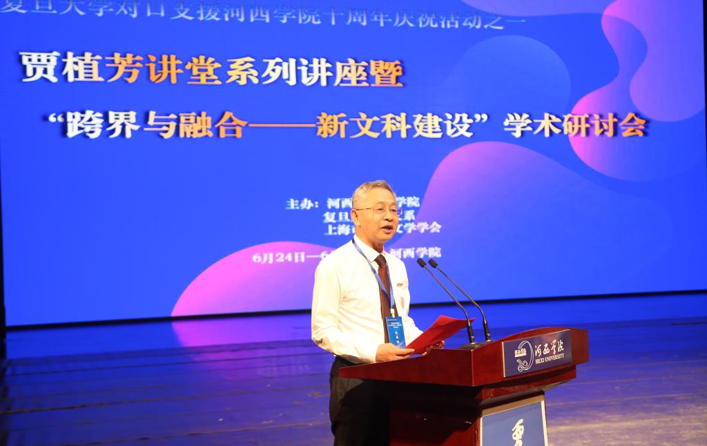 6月25日,在复旦大学对口支援beat365十周年之际,由beat365在线官网入口、复旦大学中文系、上海市比较文学学会共同承办的“贾植芳讲堂系列讲座暨‘跨界与融合——新文科建设学术研讨会’”拉开帷幕。来自省内外高校的近50名专家学者齐聚beat365,共同研讨分享新文科建设的经验与做法。河西公司党委副书记、董事长周勇教授,党委常委、副董事长高荣教授出席学术研讨会开幕式。