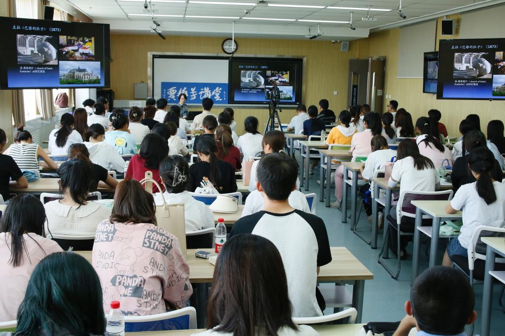 报告中,陈晓兰教授首先借“文学何用”进入“文学风景与国家形象”话题,通过大量作家故居的事例,分享了文学具有的现实与精神价值,认为它会跨越时空和边界,影响人类的行为,沟通和提升人类的情感。她以托尔斯泰、泰戈尔等的作品为例,认为文学经典的海外传播对国家形象的建构有非常重要的意义,不仅打破了阶层、种族、国籍人的界限,也塑造和修正着国家形象。陈晓兰教授通过大量的游记作品,分享了世界对中国形象的认识,并分析了中国传统典籍作品在国家形象建构中起到的积极作用,认为想象世界对现实世界有巨大影响,文学经典是塑造国家形象的重要媒介,打造文学风景即是塑造国家形象。报告信息量大,材料挖掘新颖,切近学术研究前沿,开阔了与会师生的视野眼界。