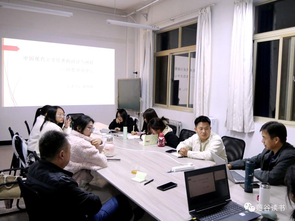 结合赖琪虹的分享和其他同学们的看法,哈建军教授和王明博教授都各自给予了点评。哈建军教授首先肯定了赖琪虹的读书汇报并作了补充,同时也对读书会提出一些可行性建议:第一,读书不应拘泥于一本书,要打破局限,注意比较阅读。既要深入文本挖掘其内涵价值,也要注意读书的深度和广度;第二,读书会所要做的工作不仅仅只是分析梳理书中的内容,应有所拓展。可以从阅读接受史、研究综述等几个方面进行延伸,这有利于我们研究性思维的提升。