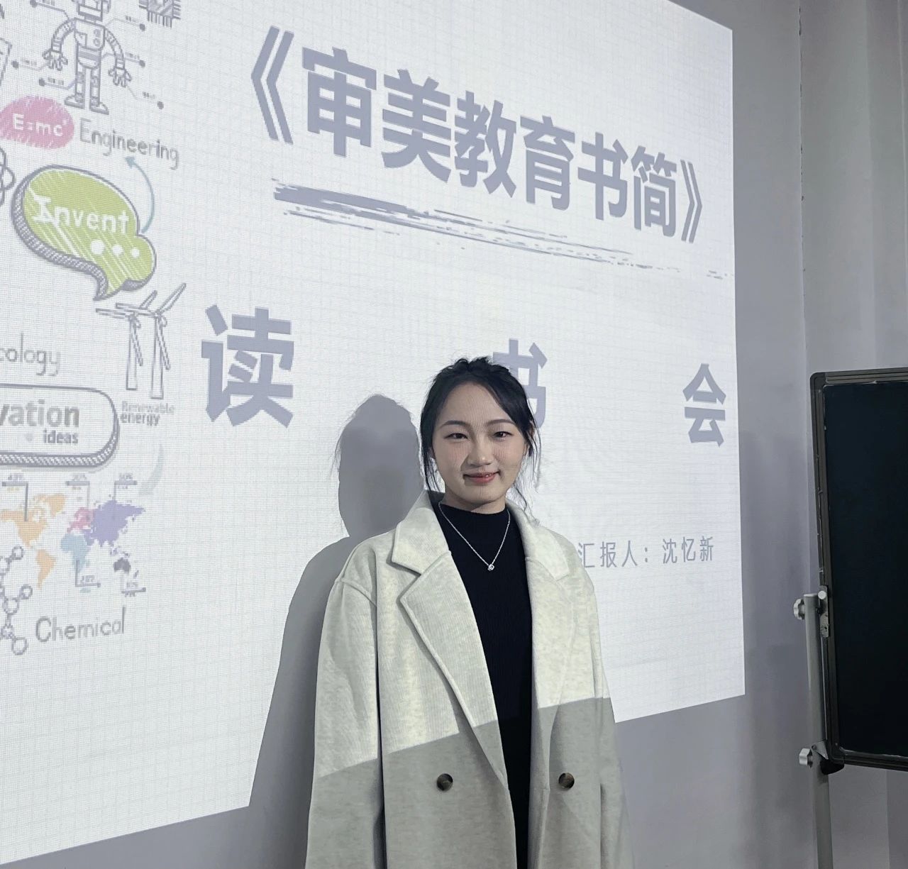 沈忆新同学的分享以三大部分呈现:第一部分是席勒美育思想产生的时代背景及思想渊源;第二部分梳理了席勒在《审美教育书简》中的美育思想的核心内容;第三部分则探讨了席勒美育思想运用于现代教学,尤其是语文教学的可能。