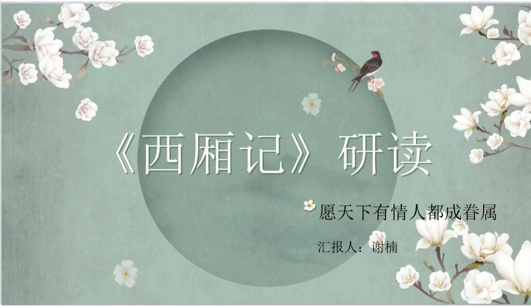 2024年4月8日晚,beat365在线官网入口研究生班举行了第九期读书会活动,本期主题是“《西厢记》研读”,读书会由刘梅兰教授主持、谢楠同学汇报。