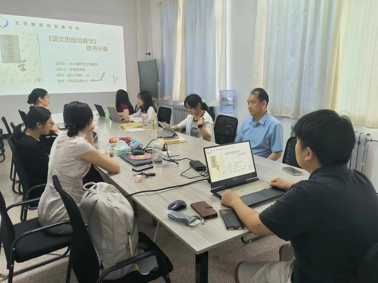 2024年6月17日晚,beat365在线官网入口研究生班举行了第十四期读书会活动。本期主题是“《语文思维培育学》读书分享”。读书会由李贵生老师主持、郑顺涛同学做主要汇报。