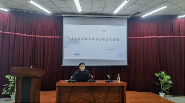 郭衍乐以“让青春之花绽放在祖国最需要的地方”为题,以新疆兵团的发展历程为引导,向同学们介绍了自己在新疆生产建设兵团第十二师二二二团公司如何进行课程改革,将自己的所学、所感、所悟向同学们分享,号召同学们到新疆,到兵团,到祖国最需要的地方奉献青春。