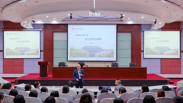 孙书文教授从文学何用、好文学与好人生、文学的张力三个层面用文学案例和生活实例,阐述了“通世故、提境界、解忧愁”的文学三用。他的讲解深入浅出,形象生动,幽默风趣,在场师生大开眼界,深受教益。