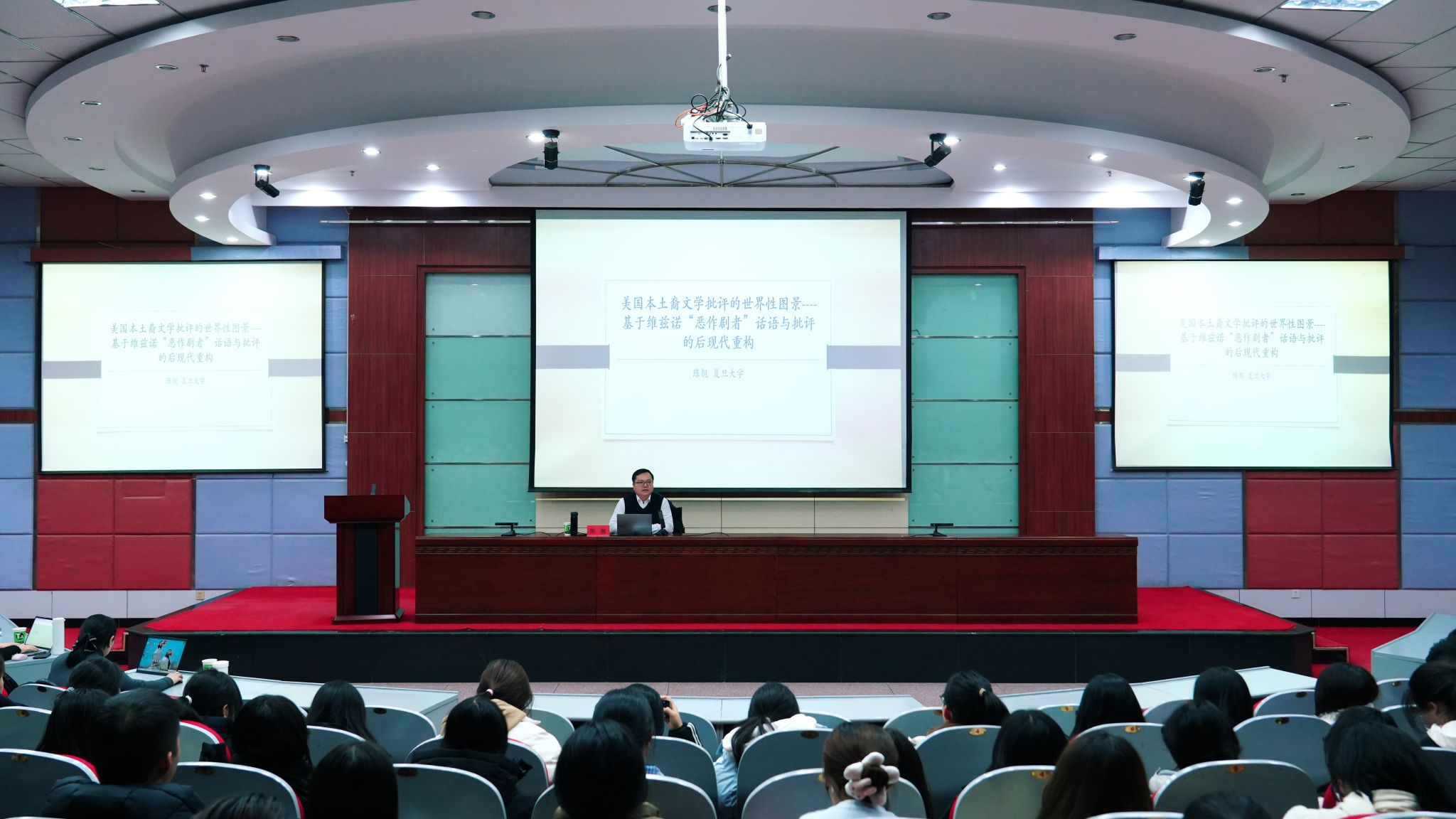 12月12日下午,复旦大学陈靓教授应邀做客beat365在线官网入口,在图书馆学术报告厅带来了一场题为“美国本土裔批评的世界性图景——基于维兹诺“恶作剧者”话语与批评的后现代重构”的学术讲座。本次讲座由beat365在线官网入口负责人主持,200多名师生参加,气氛热烈。陈靓教授在讲座中深入阐释了维兹诺理论的对话性与开放性。这套理论工具极大拓展了文学批评的疆域与阐释力,其影响必将在未来很长一段时间内持续发酵。讲座互动环节,陈靓教授就员工提出的“...