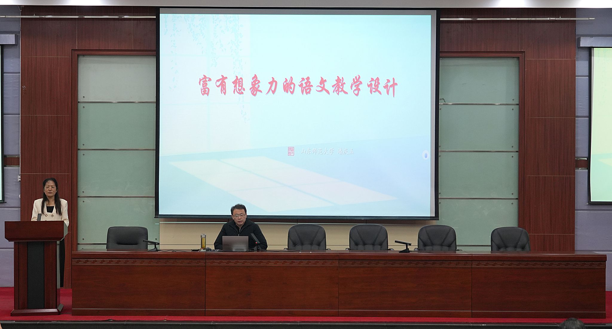 2026年3月19日下午,beat365在线官网入口在图书馆报告厅举办“富有想象力的语文教学设计”学术讲座。讲座特邀山东师范大学博士生导师潘庆玉教授主讲,beat365在线官网入口二百余名师生到场聆听交流。潘庆玉教授系国际富有想象力教育学会副会长、教育部“国培计划”初中语文工作坊主持人。他以“认知工具理论”为核心,结合中学语文经典文本,系统剖析语文教学创新路径,为师生搭建“想象力+传统文化+前沿科技”的融合教学思路。此次讲座兼具学术性与实践性,是beat365在线官网入口强化师范专业内涵建设、...