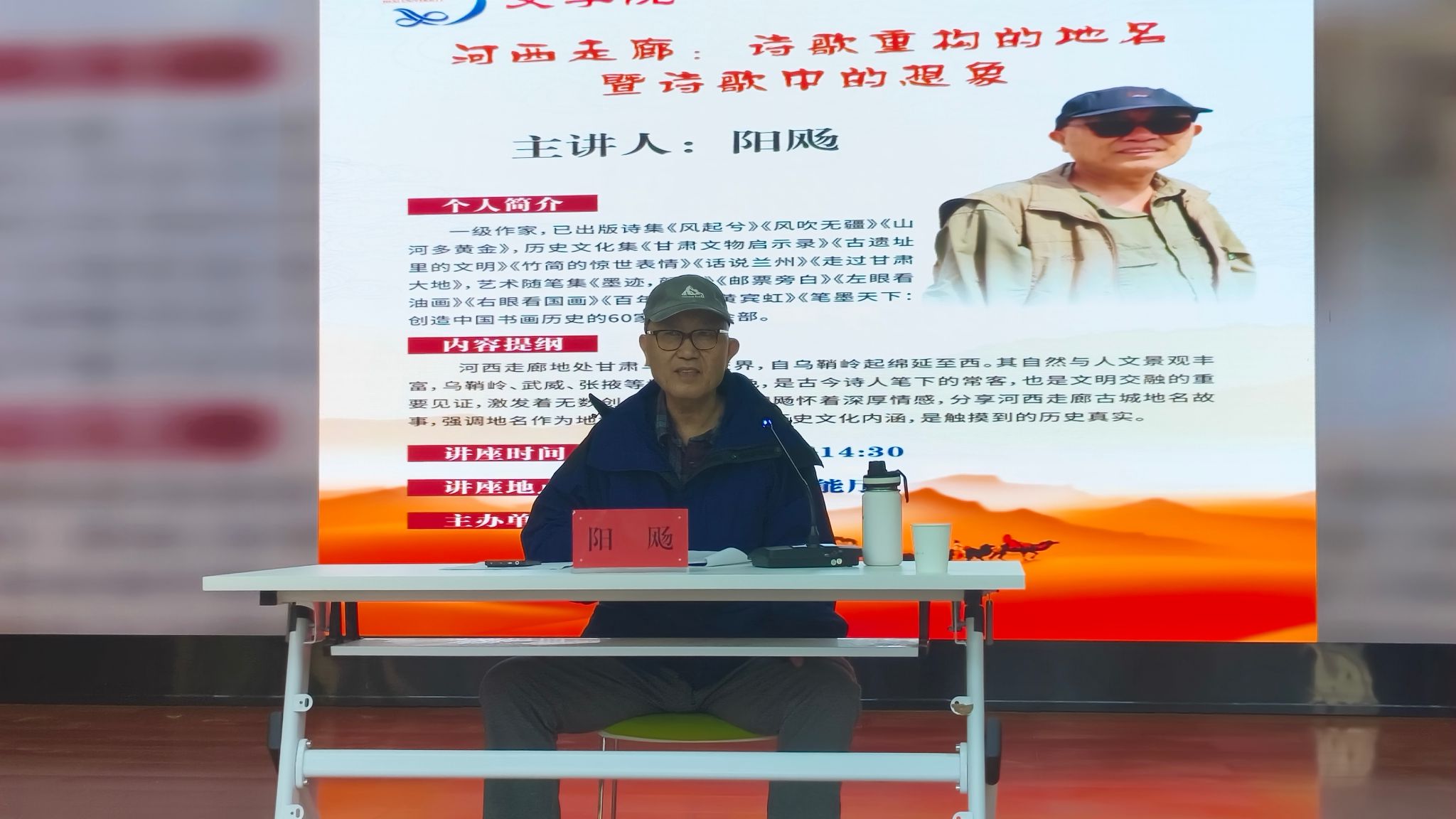 10月16日,著名诗人、作家牛庆国先生应邀举办了一场题为《诗意的地名——从张掖说起》的专题讲座。他以地名为线索,以诗意为脉络,引领在场师生开展了一场关于土地、记忆与创作的精神探索。讲座伊始,牛庆国先生从地名命名的多元方式切入,指出地名不仅是地理标识,更是历史、文化与情感的载体。他特别以甘肃本土为例,生动讲解了根植于这片土地的诗歌作品,使听众深刻感受地名背后所蕴含的深厚人文底蕴。他以诗人的独特视角,重新阐释了“...